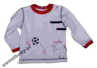 Bluzeczka chłopięca w kolorze białym z czerwonymi dodatkami, długi rękaw, zapinana na napki na ramieniu, tył gładki
