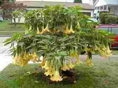 Każdy, kto zobaczy drzewo odwieszone olbrzymimi kwiatami w kształcie trąbek – przystaje zachwycony.