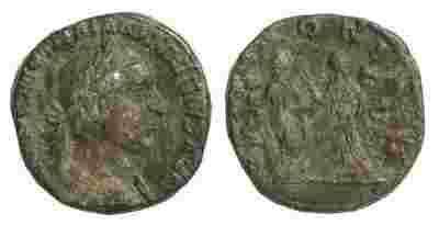 Rew. PANNONIAE [tj. pluralis "Panonie"], personifikacje dwóch prowincji Panonii (tj. Panonii "Górnej" - Pannonia Superior i "Dolnej" - Inferior) stojące w lewo z głowami zwróconymi w lewo (personifikacja z lewej) i prawo (z prawej), z prawymi rękami zwróconymi do góry, w lewych trzymające sztandary wojskowe (łac. signa), z obu ich stron skrót S(enatus) - C(onsulto) [tj. "z woli senatu"].