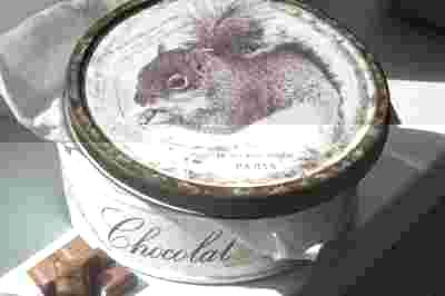 Decoupage vintage puszka Chocolate squirrel