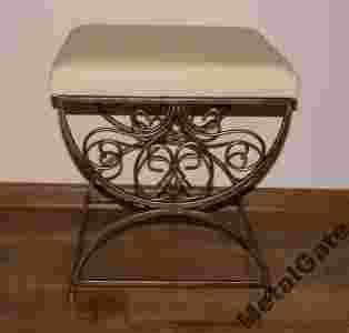 Wspaniale komponuje sie z wieszakiem, lustrem, bądź stolikiem z metaloplastyki. (patrz moje inne aukcje) Wymiary: wysokość: 45-47 cm szer siedziska: 38cm dł siedziska: 40cm