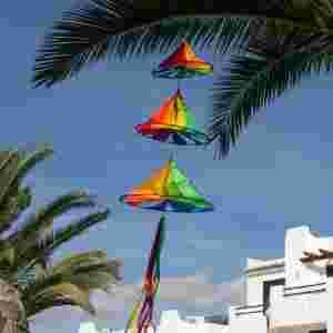 Hexenhut Triple Rainbow przypomina wiszące dzwoneczki, poruszane przez wiatr. Każda z trzech połączonych ze sobą turbin jest innej rozmiaru. Idealna dekoracja na balkon, wiatę czy maszt.