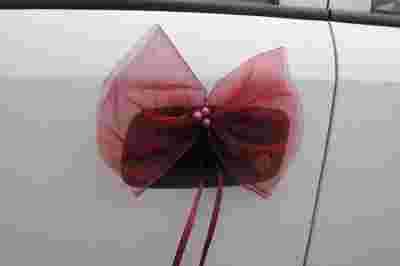 Dekoracja samochodu, ślub, kokardy na klamki.