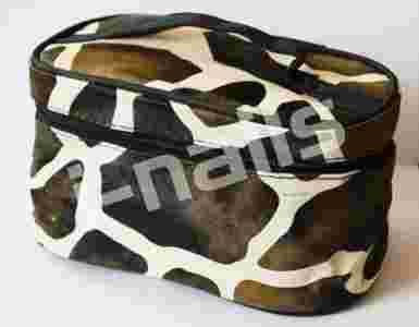 Duża kosmetyczka z uchwytem. Zapinana na suwak. Wewnątrz jedna komora na akcesoria kosmetyczne oraz lustereczko na wstążce. W środku obszyta jasnokremowym materiałem. Naokoło ozdobiona lamówkami. Dosyć spora, pomieści dużo kosmetyków (np. kolorówki) - świetna też na ozdoby do paznokci. Wykonana z materiału pokrytego winylem, niebrudząca się, łatwa do utrzymania w czystości. Ładne wzornictwo.