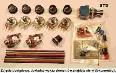 - Komplet elementów wraz z potencjometrami, gałkami, gniazdami,