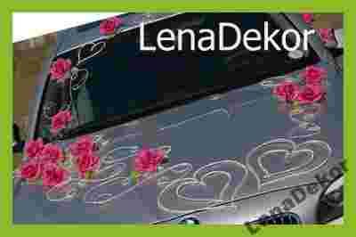 Na zdjęciach przedstawiamy zestaw dekoracyjny DELIA w kilku różnych układach. Do przystrojenia każdego samochodu wykorzystano tylko JEDEN komplet dekoracji DELIA. Ozdobę można również zamocować według własnego pomysłu. Zestaw DELIA jest uniwersalny. Składa się z wielu osobnych elementów, które można dowolnie ze sobą komponować. Łatwo dopasować go do każdego samochodu. Stroiki można zamocować na masce, dachu, drzwiach lub szybach.