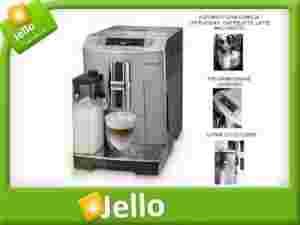 Ekspres ciśnieniowy o pojemności 2 l, sterowany elektronicznie, z funkcją mielenia kawy, spieniania mleka, podgrzewania filiżanek oraz z podwójnym dozownikiem.