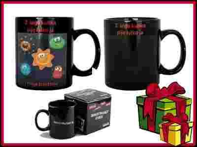 - specjalna farba zmienia się pod wpływem ciepła - po wystygnięciu lub zalaniu zimną woda wraca do stanu początkowego - wysokiej jakości opakowanie, doskonała jakość produktu - pojemność kubka 300 ml