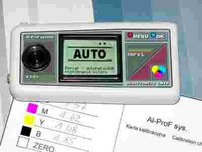 Densytometr do pomiaru kostek podczas druku, jego przeznaczeniem jest utrzymanie właściwej ilości farby nakładanej przez maszynę, oraz innych parametrów mających wpływ na jakość wydruków. Wyświetla zmierzone wartości w skali density (D) lub w skali procentowej (%), jest bardzo łatwy w obsłudze. Duży, graficzny wyświetlacz automatycznie podświetlany zapewnia doskonałą czytelność. Menu w języku polskim. Dokładność pomiaru 0,1%, 0,01D. Pracuje w trybie automatycznym - rozpoznaje mierzony kolor CMYK i wyświetla jego wartość, lub ręcznym - można ustawić mierzony kolor - przydatne przy niskich wartościach <15% oraz przy pomiarze kolorów mieszanych. Zasilany z baterii 6F22 lub akumulatora ładowanego w zewnętrznej ładowarce (nie wchodzi w skład kompletu). Punkt pomiarowy o średnicy 3mm. Czas pomiaru 0,2sek. lub pomiar ciągły (continuous). Gwarancja 1 rok.