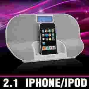 Niewielkich rozmiarów stacja dokująca dla iPoda/iPhone'a z wejściem AUX, radiem i funkcją budzika.