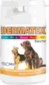 Dermatex przeznaczony jest dla psów dorosłych, szczeniąt i zwierząt futerkowych do stosowania w celu utrzymania zdrowej skóry i poprawy jakości sierści. Preparat podaje się szczególnie zwierzętom podatnym na choroby skóry (np. dermatozy, nadmierne wypadanie sierści, utrata elastyczności włosa), w okresie rekonwalescencji po przebytych chorobach, przy osłabieniu organizmu, w celu przyspieszenia odrostu sierści w czasie linienia oraz w okresie formowania okrywy włosowej. Dermatex jest skuteczny podczas formowania się i dojrzewania okrywy włosowej, która pod wpływem preparatu uzyskuje piękny połysk, staje się gęsta i sprężysta. Pod wpływem Dermatexu obniża się wrażliwość skóry na alergie, zmniejsza się kruchość i łamliwość włosa, następuje regeneracja ubytków sierści oraz poprawia się wygląd i trwałość pazurów.