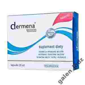 Dermena complex to unikalne połączenie wyciągu z nasion lnu LinumLife EXTRA, ekstraktu ze skrzypu polnego z zestawem najważniejszych witamin i mikroelementów wzmacniających włosy, skórę i paznokcie. Zawarte w preparacie składniki wpływają na lepsze odżywienie mieszka włosowego poprzez dostarczenie mu substancji odżywczych niezbędnych w fazie intensywnego wzrostu włosów. Witamina B6 bierze udział w normalnej syntezie aminokwasu siarkowego – cysteiny, jednego z podstawowych komponentów keratyny, która jest głównym budulcem włosów.