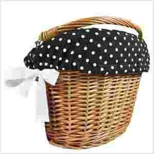 Dla tych, którzy spędzają na rowerze mnóstwo czasu, dla miłośniczek retro i dla wszystkich kobiet, które po prostu lubią otaczać się ładnymi rzeczami. Urokliwy koszyczek wyplatany ręcznie z najmocniejszej polskiej wikliny nada Twojemu rowerowi niepowtarzalnego, kobiecego stylu. Jego dodatkową zaletą jest ozdobne wyszycie w groszki, wykończone kokardkami – inspirowane stylem pin up - które można wyjmować i prać, kiedy tylko pojawi się taka potrzeba. Koszyk jest niezwykle funkcjonalny. Dzięki niemu wybierzesz się rowerem na zakupy lub na piknik za miasto (zabranie koca i prowiantu nie będzie stanowiło żadnego problemu – koniec z plecakiem obciążającym Twój kręgosłup). Montuje się go za pomocą dwóch wytrzymałych haków – na kierownicę lub z boku bagażnika. Wygodny pałąk umożliwi Ci branie ze sobą koszyka, kiedy np. idziesz do sklepu. Pokaż wszystkim , że Twój rower też jest kobietą! ;)