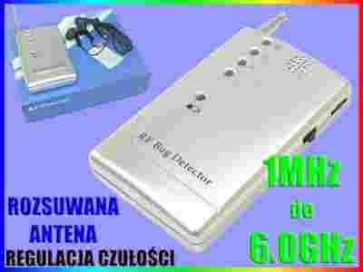 - duży zakres wykrywanych częstotliwości 1MHz-6.0GHz - obejmuje on prawie wszystkie pasma używane przez dostępne na rynku urządzenia podsłuchowe
