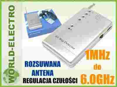 - duży zakres wykrywanych częstotliwości 1MHz-6.0GHz - obejmuje on prawie wszystkie pasma używane przez dostępne na rynku urządzenia podsłuchowe