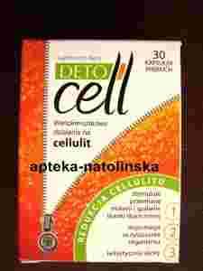 Detocell to preparat przeznaczony dla kobiet ze skłonnością do występowania cellulitu zwanego potocznie " skórką pomarańczowa". Cellulit [polega na nieprawidłowym ukształtowaniu tkanki tłuszczowej widocznym w postaci nieregularnych zgrubień skóry. Zmiany te mają ścisły zwiazek z mechanizmem mikrokrążenia w komórkach skóry oraz z metabolizmem tkanki tłuszczowej. Składniki DETOCELL przez swoje wielokierunkowe działanie wplywają na poprawę metabolizmu komórkowego skóry, prowadząc do redukcji cellulitu.