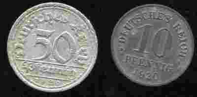 DEUTSCHES REICH 50 , 10 PFENNIG 1920 r