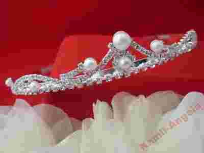 DIADEM ŚLUBNY KORONA TIARA OPASKA CYRKONIE PERŁA