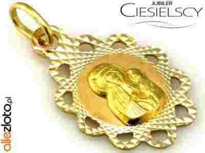 DIAMENTOWANY złoty MEDALIK Z MATKĄ BOŻĄ
