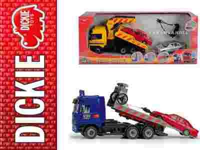 Ciężarówka laweta przeznaczona do holowania uszkodzonych samochodów wyposażona dodatkowo mechanizm podnoszenia oraz opuszczania platformy. Pojazd został wyposażony w dwie metody transportu: na lawecie oraz za pomocą tylnego wysięgnika. Ciężarówka posiada możliwość załadunku uszkodzonego pojazdu poprzez dźwig lub wysuwaną platformę załadunkową. Laweta została wyposażona w dwa dodatkowe samochodziki osobowe, które stanowią integralną część tego zestawu. Z innowacji jakie zostały wprowadzone w tym modelu to ruchomy mechanizm poruszania ramieniem dźwigu, działa on za pomocą pokręteł. Ciężarówka posiada również podnoszoną kabinę pod nią widać silnik. Zestawy występują w dwóch wersjach z żółtą oraz niebieską kabiną ciężaróki wysyłamy je losowo, w przypadku wyboru konkretnego modelu prosimy o kontakt w celu ustalenia dostępności produktu.