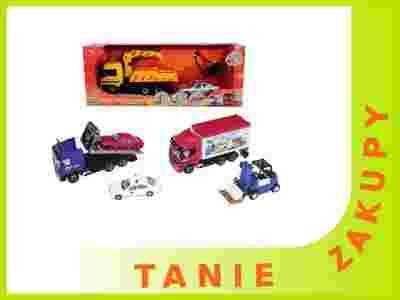 Laweta z podnośnikiem i dwoma samochodami, laweta z wywrotką i dwoma samochodami lub ciężarówka z wózkiem widłowym, bez napędu, wnętrze, ruchome elementy, wymiar: 27 cm