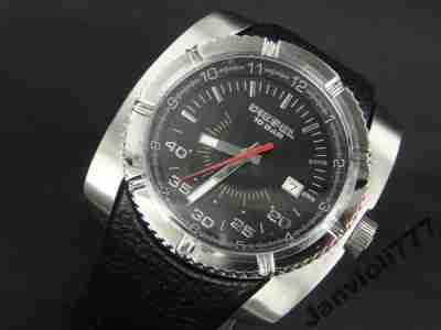 Brand Name: Diesel Model number: DZ1152 Part Number: DZ1152 Dial window material type: scratch-resistant-sapphire Display Type: analog Clasp: Buckle Case material: stainless-steel Case diameter: 45 millimeters Case Thickness: 12 millimeters Band material: Leather Band length: mens Band width: 27 millimeters Band Color: black Dial color: black Bezel material: stainless-steel Bezel Function: stationary Calendar: Date Special Features: water-resistant Movement: Quartz Water resistant depth: 165 Feet