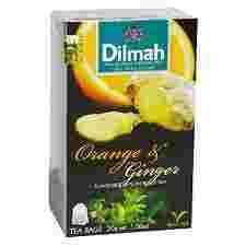 Dilmah "Orange & Ginger" to czarna herbata z aromatem pomarańczy i imbiru . 20 torebek ekspresowych z etykietą jest zapakowanych w folię dla zachowania świeżości .