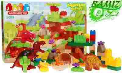 Zestaw klocków różnej wielkości, łatwo wciskających się jeden w drugi oraz duża liczba elementów dekoracyjnych, pozwoli początkującym miłośnikom dinozaurów stworzyć swoją własną, niepowtarzalną Dolinę Dinozaurów.