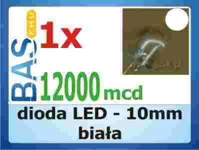 Dioda LED 10 mm - biała 12000 mcd (clear)