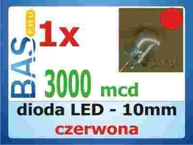 Dioda LED 10 mm - czerwona 3000 mcd (clear)