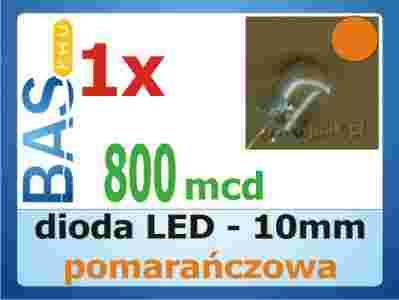 Dioda LED 10 mm - pomarańczowa 800 mcd (clear)