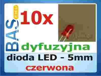 Dioda LED 5mm czerwona DYFUZYJNA - 10 sztuk