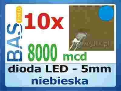 Dioda LED 5mm niebieska 8000mcd - 10 sztuk
