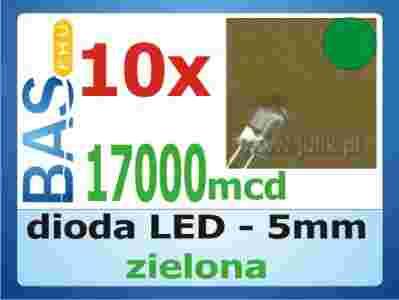 Dioda LED 5mm zielona 17000mcd - 10 sztuk