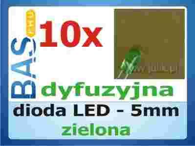 Dioda LED 5mm zielona DYFUZYJNA - 10 sztuk