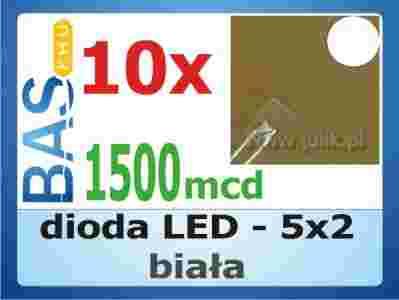 Dioda LED 5x2 biała prostokątna _ 1500mcd _ 10szt