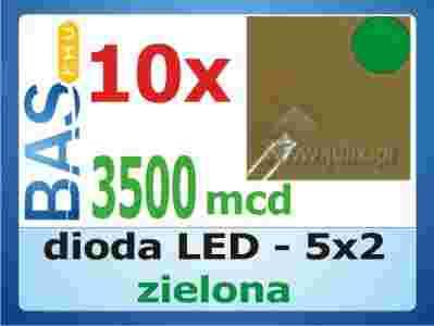 Dioda LED 5x2 zielona 3500mcd prostokątna _ 10szt