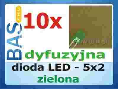 Dioda LED 5x2 zielona prostokątna _ 10szt