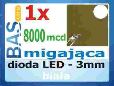 Dioda LED _ migająca _ 3mm _ biała _ 8000mcd