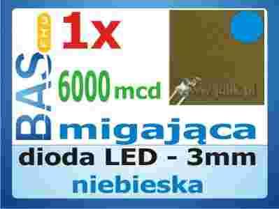 Dioda LED _ migająca _ 3mm _ niebieska _ 6000mcd