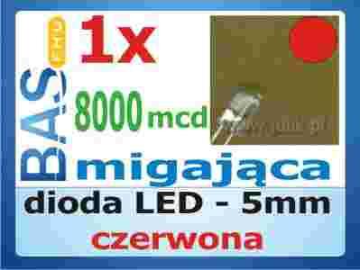 Dioda LED _ migająca _ 5mm _ czerwona _ 8000mcd