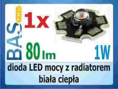 Dioda LED mocy 1W z radiatorem - biała ciepła