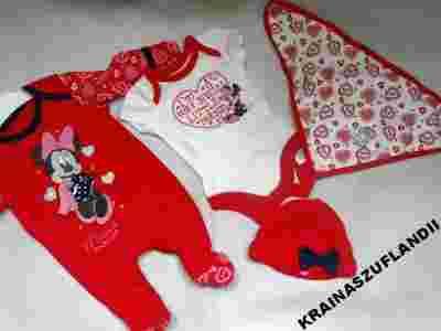 DISNEY KOMPLET ŚPIOCH CZAPKA BODY CHUSTKA NEWBORN