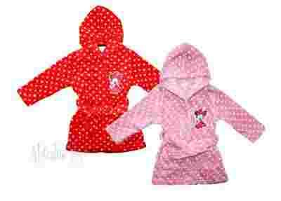 Przedmiotem aukcji jest cudowny szlafroczek dla dziewczynki Disney Minnie, dostępny w dwóch kolorach, czerwonym i różowym w białe kropki. Uszyty z przemiłej, cieplutkiej i super mięciutkiej tkaniny, szlafrok posiada kaptur i dwie kieszonki, w pasie wiązany paskiem, na przodzie naszyta ładna aplikacja z Minnie, super lekki i cieplutki, idealny dla każdej dziewczynki na chłodne jesienne i zimowe wieczory, jakość wzorowa, gorąco polecam i zachęcam do zakupu