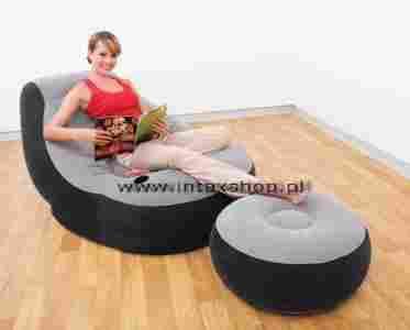 Dmuchany welurowy fotel + podnóżek INTEX. PROMOCJA