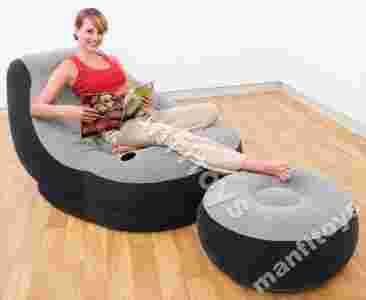 Dmuchany Welurowy FOTEL +PUFA Podnozek INTEX 68564