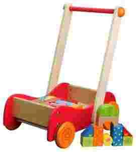 Drewniany wózek i pchacz z klockami