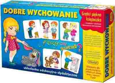 Podczas zabawy dzieci zapoznają się z przykładami zarówno dobrego jak i złego zachowania, dzięki czemu nauczą się je rozróżniać. Oprócz gry w zestawie znajdziesz także książeczkę, w której na 32 stronach przeczytasz piękne wierszyki. Układanka „Dobre wychowanie” posiada nie tylko walory dydaktyczno-edukacyjne, ale również dzięki trzem rodzajom gier jakie proponuje, ćwiczy pamięć, rozwija koncentrację i równocześnie stymuluje do myślenia. Zestaw gry zawiera: - 32-stronnicowa książeczka z wierszykami, - 24 duże, sztywne plakietki, - 45 żetonów