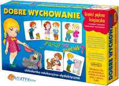 Podczas zabawy dzieci zapoznają się z przykładami zarówno dobrego jak i złego zachowania, dzięki czemu nauczą się je rozróżniać. Oprócz gry w zestawie znajdziesz także książeczkę, w której na 32 stronach przeczytasz piękne wierszyki. Układanka „Dobre wychowanie” posiada nie tylko walory dydaktyczno-edukacyjne, ale również dzięki trzem rodzajom gier jakie proponuje, ćwiczy pamięć, rozwija koncentrację i równocześnie zachęca do twórczego działania i kreatywnego myślenia.