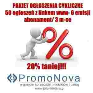 PAKIET ogłoszeń cyklicznych: 50 ogłoszeń w popularnych portalach z aktywnym linkiem www. 6 emisji co 14 dni